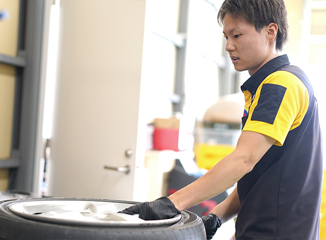 以前タイヤホイールを購入していただいたお客様が「対応が良かったからまた来ました」や「星山さんからまた買いたい」などと言っていただいたことです。その言葉でモチベーションが上がりますし一人一人のお客様を大切にしようと思えます。タイヤホイール交換時期以外はナビ、マフラー等の取付作業も行っています。最初は何も分からないので先輩と一緒に作業をしますが、経験を積んである程度一人で出来るようになったときにやりがいを感じます。